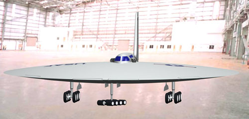 THE LARGE DISC: Measuring 108 feet in diameter, and standing 12' off of the ground, the largest of the four discs must have been a sight to behold. The O.I.C. permitted Jack to walk under and around this aircraft, and was actually allowed to kick the tires of the smaller 40' craft, while the O.I.C. stood nearby and snapped a photo in the process. Jack specifically noted that the port main landing gear was partially collapsed, causing the aircraft to lean to the left. Each main landing gear consisted of 6 wheels, measuring 5' in diameter. The nose gear had an incredible 32 wheels, each measuring 2-1/2 to 3 feet in diameter. A door was located on the port side of the craft, for access to the crew compartment. Immediately behind the door, were three windows that ran along both sides of the fuselage. These may have been stations for the flight engineer, navigator, and weapon systems operator. The large craft employed two air-intakes on both sides of the crew compartment, and four exhaust ports at the aft bottom end of the craft. The air intakes blended beautifully into the sides of the fuselage and upper portion of the disc. Jack specifically recalls that the unusually high vertical stabilizer was "higher than shopping mall parking lot lights". It was evident that the landing gear retracted inside the main body of the disc, with the gear moving up and away from the centerline of the aircraft. Flight control surfaces were located along the circumference of the disc, similar to the 20' model. Jack remembers seeing what may have been bomb bay doors located on the bottom surface of the disc. These may have been used for the release of 10' diameter in-flight radio controlled flying wing disc bomb drones. Indeed, Jack remembers seeing flying wing disc drones in various stages of disrepair at the scrap-yard, near the four discs. These bombs were capable of being delivered with "pin-point" accuracy decades before Lockheed F-117 Stealth Fighters dropped "smart bombs" on Iraq during the Gulf War. This indicates that the primary mission for this aircraft may have been that of a long range reconnaissance bomber. Jack was told that this aircraft regularly over-flew Russia after WWII, but was told: "you can't print that".